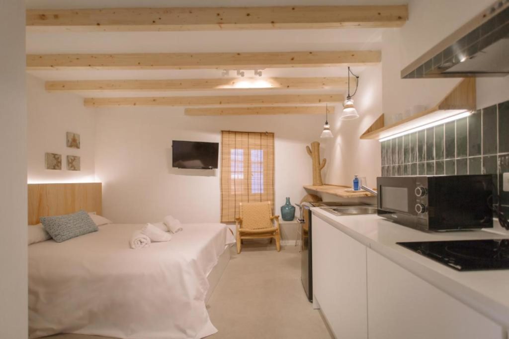 The rooms are imbued with an artisan charm that highlights and appreciates local craftsmanship through their decoration. An example of this is the inclusion of esparto grass, which is found in the modern flats but retains a traditional essence.