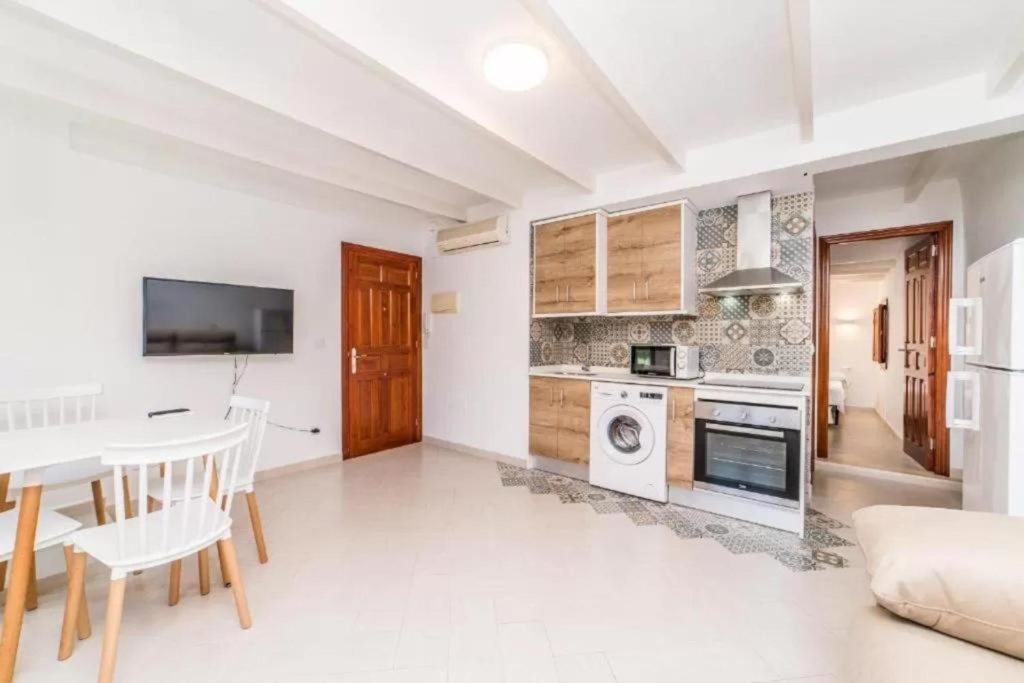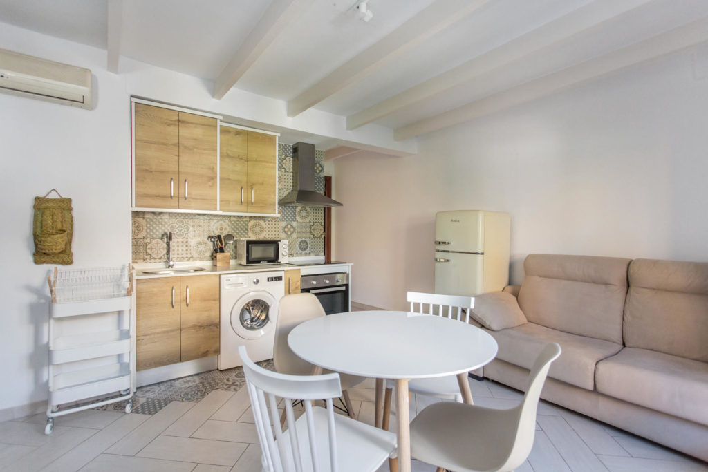 Apartamentos de aproximadamente 44 m² con una habitación independiente, salón con sofá cama y cocina integrada totalmente equipada (microondas, nevera, horno, cafetera, lavadora…)